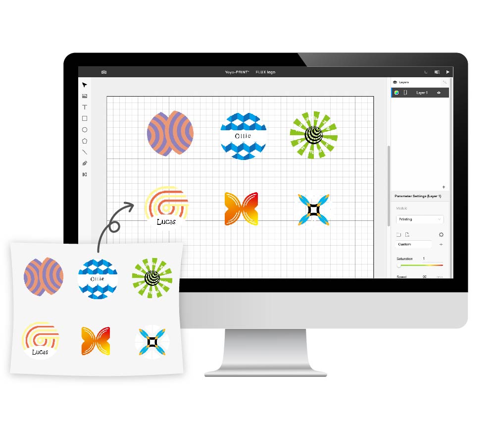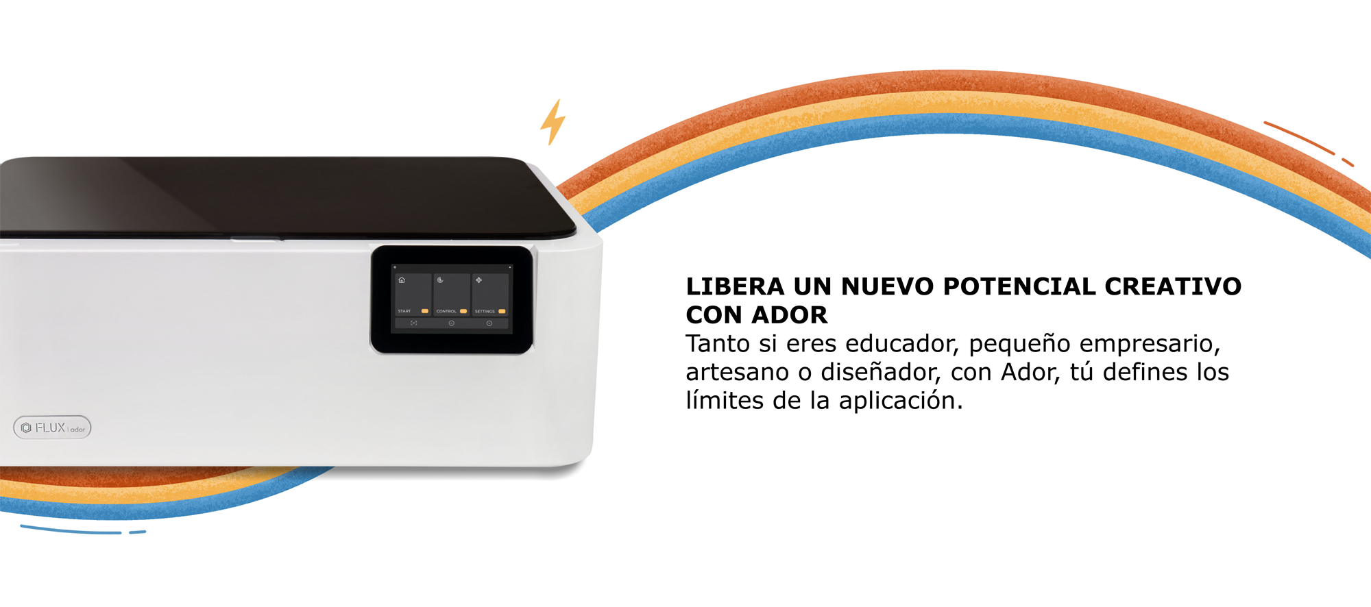 Conozca FLUX Ador, la primera cortadora láser con impresión en color del mundo. Con tres módulos intercambiables de alta calidad, Ador le permite grabar y cortar una amplia gama de materiales y realzar sus proyectos con un toque de color