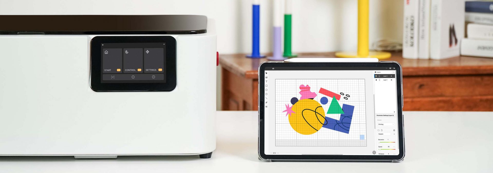 Equipado con un panel de control táctil de 5 pulgadas, navegue por los archivos, controle el progreso y realice ajustes en tiempo real.