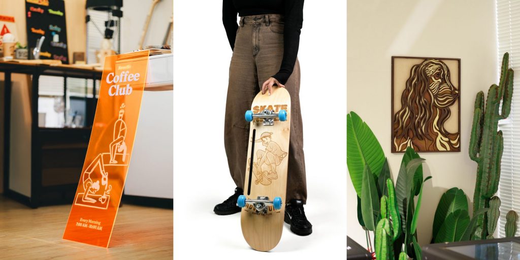Trabaja con vinilos, cartulinas, maderas finas, acrílicos y otros materiales planos de forma continua, sin tener que recolocar la pieza cada vez.
