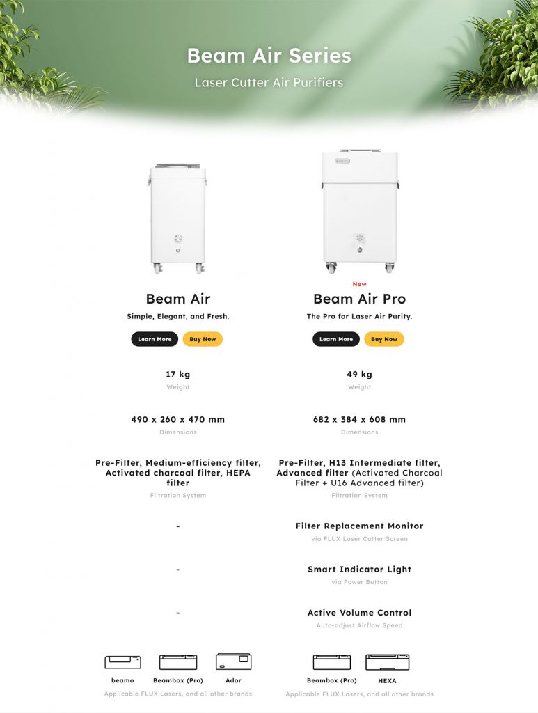 Si estás usando FLUX Beamo, u otro cortador láser de hobby más pequeño, Beam Air es una opción perfecta.