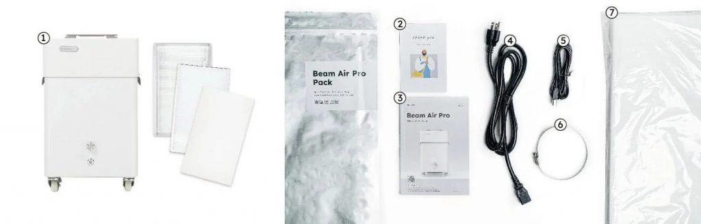- FLUX Beam Air Pro con 1x prefiltro, 1x filtro intermedio, 1x filtro avanzado