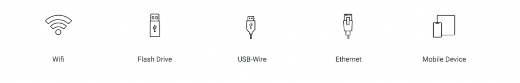 HEXA ofrece múltiples métodos de integración de la conexión, conexión directa desde WiFi, USB, cable de red…, no importa si es por cable o inalámbrica, ¡HEXA se mantiene en línea!